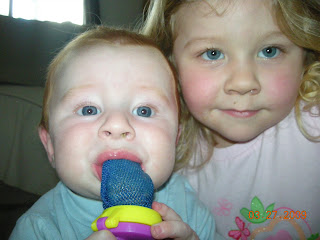 i tried peas today and he wasn't too hot on them. i'm going to keep trying them though. fruit is an easy one because it's sweet. ely didn't eat foods until she was like 9 or 10 months old. we used the mesh a little , but she was old enough to just do finger foods. messy, but fun!